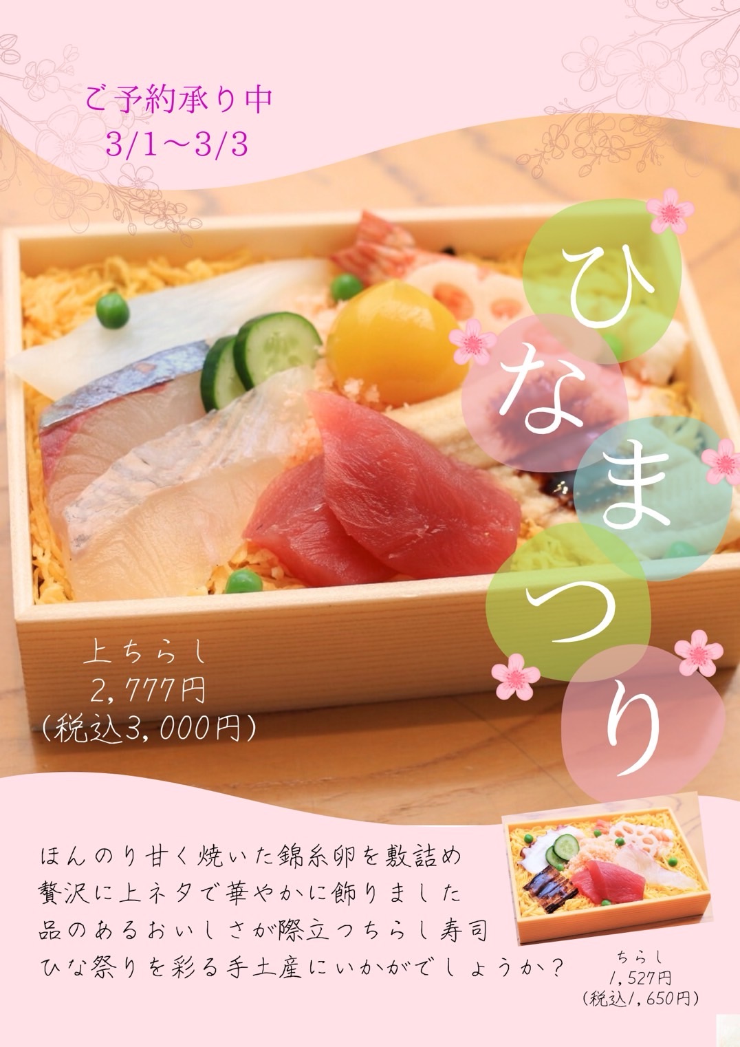 ひな祭り上ちらし寿司販売のお知らせ